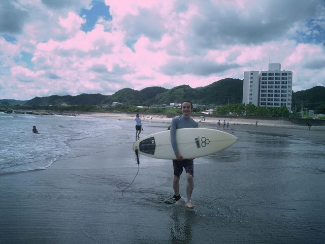これはかっこいいサーファ、後ろにはわが家
